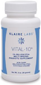 Vital-10® is a hypoallergenic, proprietary blend of 10 probiotic species developed specifically for the maintenance of a healthy intestinal microflora. These broad-acting microorganisms help maintain a healthy, balanced flora, promote normal gastrointestinal function, synthesize B vitamins and vitamin K, facilitate nutrient and mineral absorption, and support normal intestinal and systemic immune functions. This high-potency powder provides 10+ billion CFUs per 1/4 teaspoon.†
