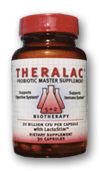 Probiotics such as Lactobacillus acidophilus and Bifidobacterium bifidum are beneficial bacteria that colonize the human intestinal tract. Species of Bifidobacteria colonize the large intestine while Lactobacillus species colonize the small intestine. Theralac is a new, highly effective probiotic that replenishes these beneficial bacteria with 20 billion CFU of five new generation probiotic strains. Theralac probiotic supplements promote a healthy soft-lining (wall) in the intestinal tract which results in improved digestion, regularity and nutrient absorption.